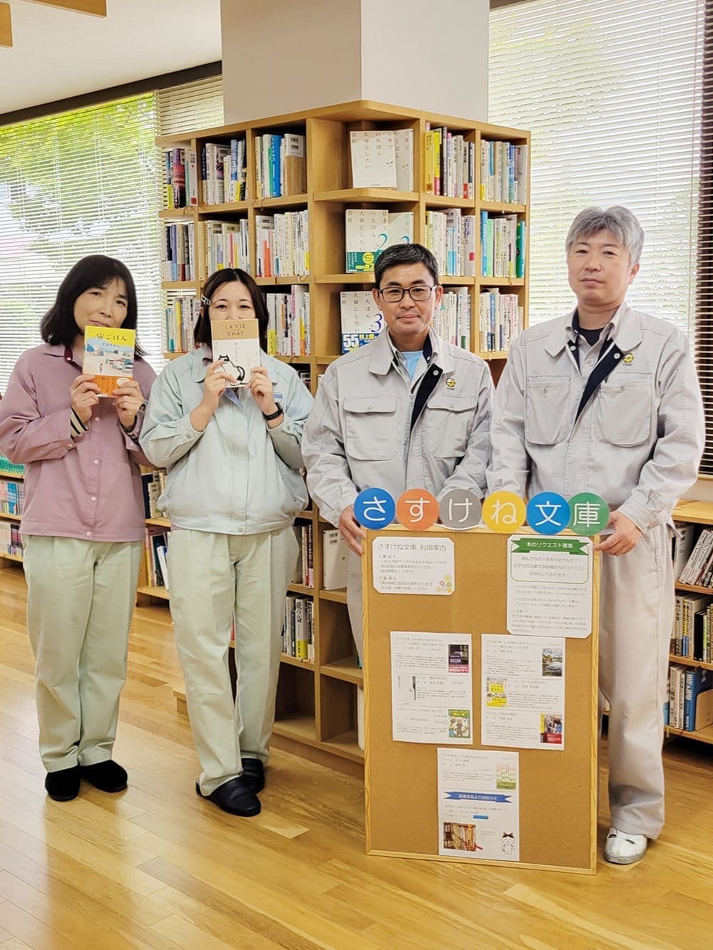 蔵書数1,443冊、1年間の貸出数600冊、リクエスト本購入数は383冊です。「職場で気軽に借りられるため読書熱が高まった‼。」 など評判は上々です。